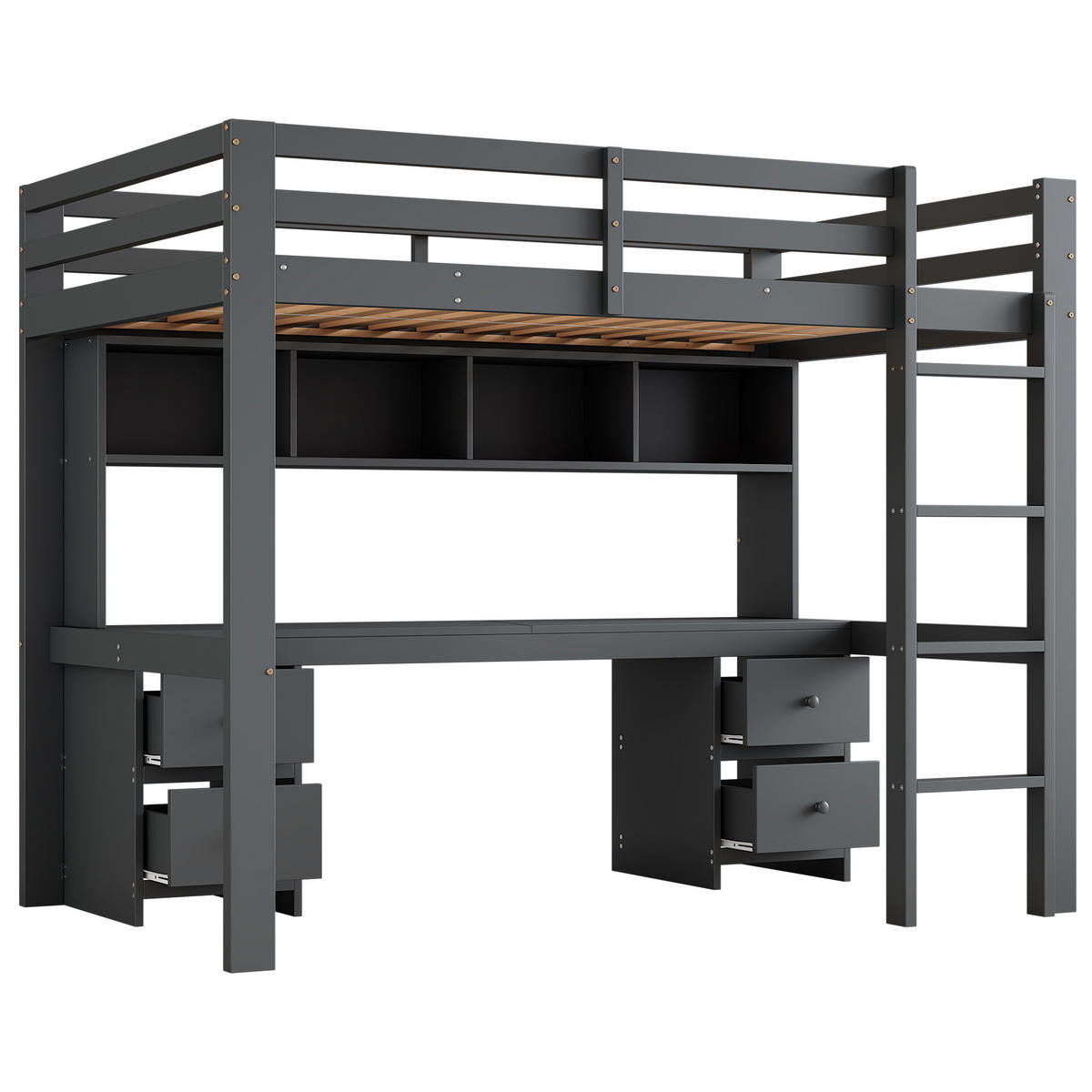 - Ausstattung: Schreibtisch, hohes Geländer, stabile Treppe