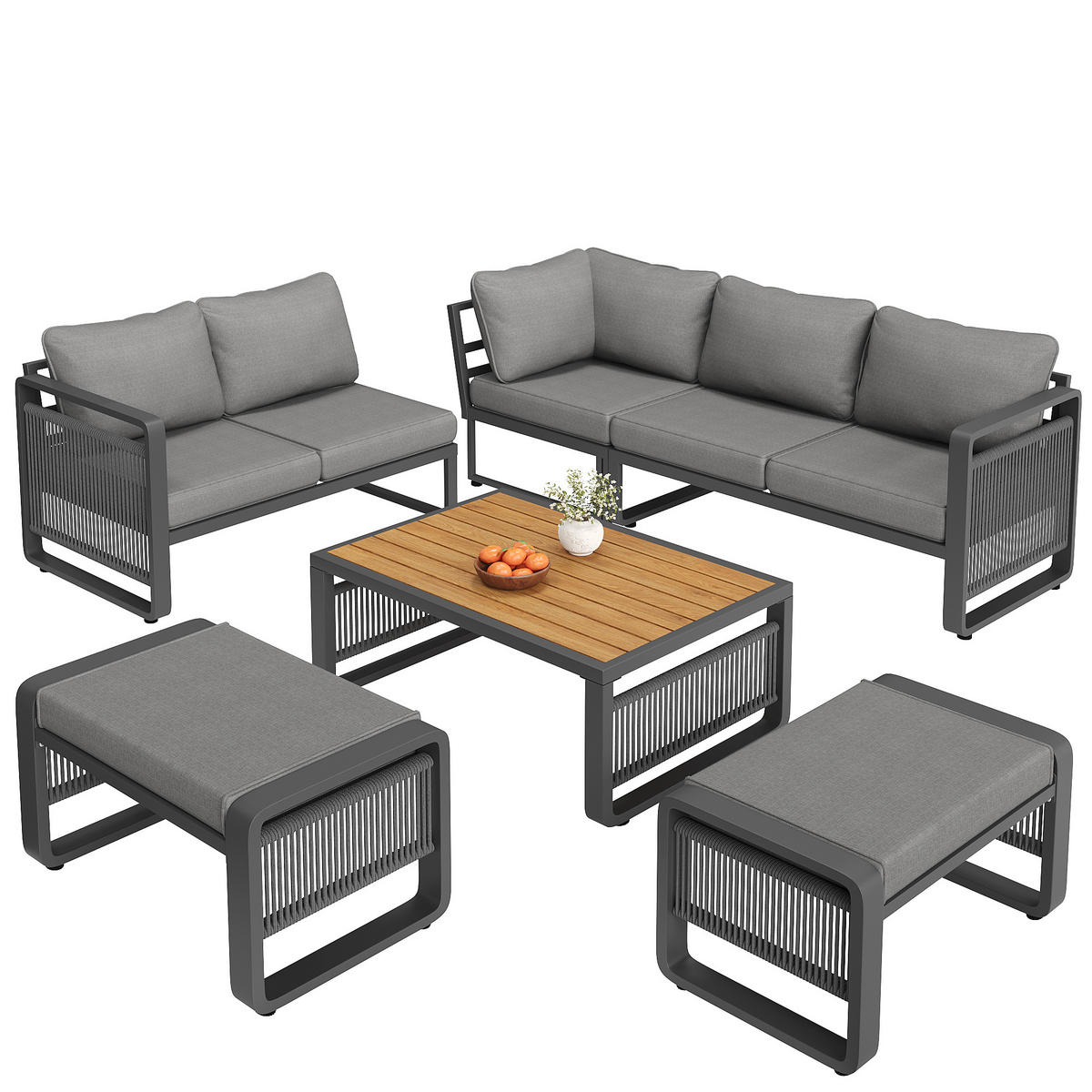 - Lieferumfang: Zweisitzer-Sofa x2, Ecksofa x1, Einzelhocker x2, Couchtisch x1 (3 Pakete)