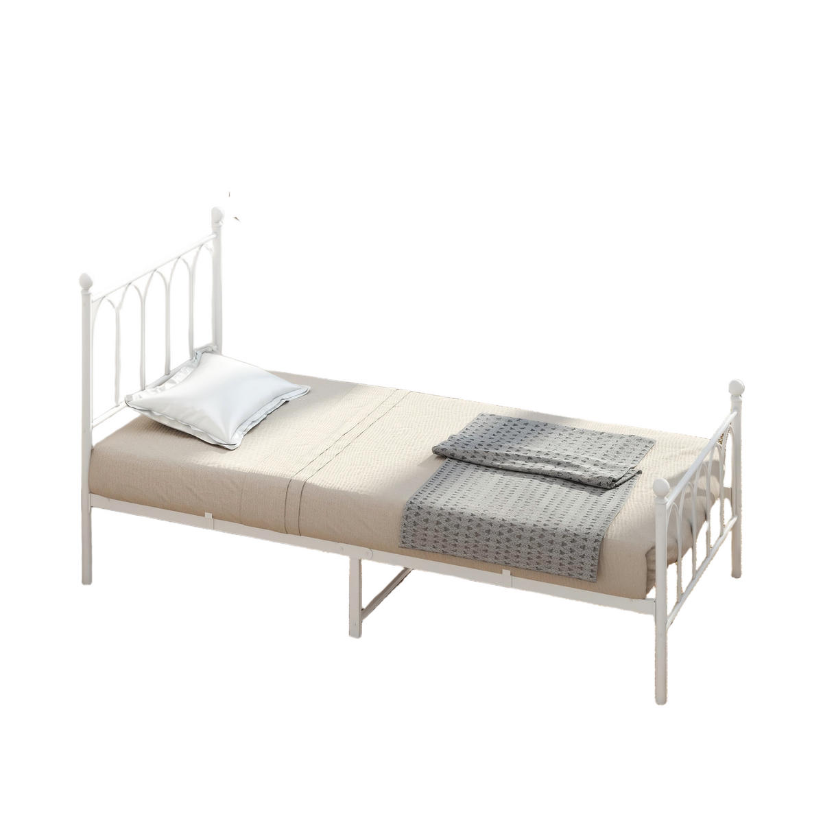 Produktübersicht:Dieses elegante Metallbett begeistert mit seinem modernen Look in Weiß und einem gemütlichen Design, das jeden Raum aufwertet. Die stabile Konstruktion des Bettes besteht aus hochwertigem Stahlrahmen, die für eine hervorragende Unterstützung und einen erholsamen Schlaf sorgen.