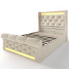 - Ausstattung: LED-Lichtstreifen an Kopf- und Fußteil, App- und Fernbedienung, USB- und Type-C-Ladestation auf beiden Seiten, abnehmbarer Samtbezug unter dem Kopfteil