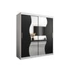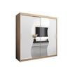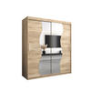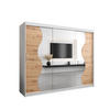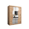 Schrankabmessungen: Breite 250 cm, Höhe 200 cm, Tiefe 62 cm. Türtyp: Schiebetür. Anzahl der Türen: 3 Türen. Kleiderschrank mit Spiegel. Material: Korpus und Front aus 16 mm dickem Laminat, Aluminiumführungen, Metallstangen, Kunststoffgriffe, Kanten aus 0,5 mm starkem PVC-Furnier.