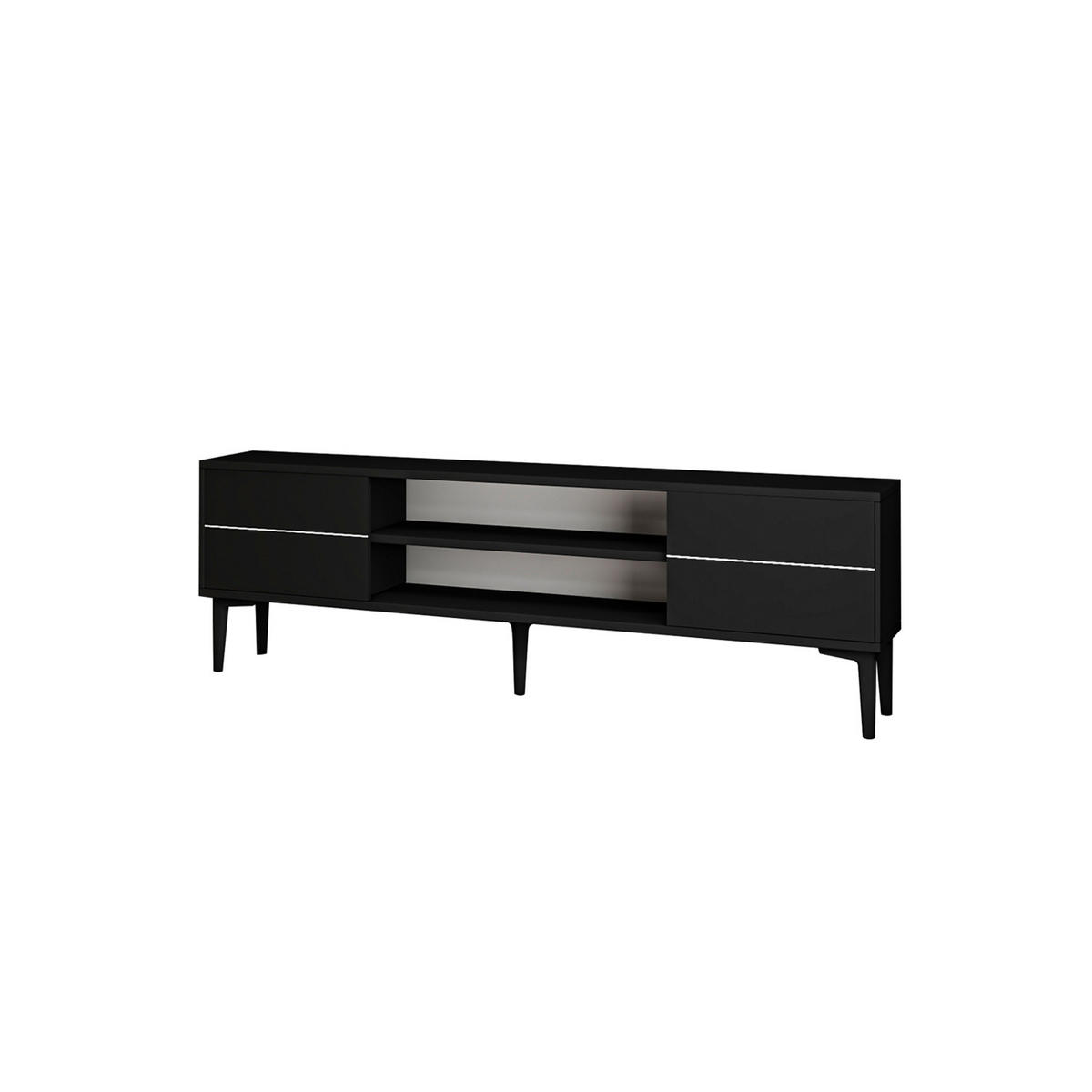 Mit unserem Aragon TV Lowboard der Marke moebel17 punkten Sie nicht nur mit dem individuellen Design, sondern auch mit besonders viel Stauraum. Das Lowboard präsentiert sich in klassischem schwarz, was eine elegante und moderne Ästhetik schafft. Die dunkle Farbe verleiht dem Lowboard einen modernen und eleganten Touch. Es kann sich durch seinen schlichten Look gut in verschiedenste Einrichtungsstile einfügen. Auf die obere Ablage können Sie auch größere Fernseher ohne Probleme aufstellen. Die offenen Ablageböden und verschlossenen Schrankfächer bieten Ihnen zusätzlichen Stauraum, um alltägliche Gegenstände, wie z.B. Bücher, DVD`S für den Filmeabend oder auch Kuscheldecken aufzubewahren. Dieses TV Lowboard wird der neue Blickfang in Ihrem Wohnzimmer.