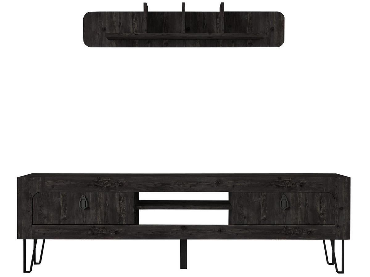 WOHNWAND Emerald Rebab Braun Dunkelgrau mit Metallfüße - Dunkelgrau/Schwarz, Holzwerkstoff/Metall (180/55/30cm) - moebel17moebel17