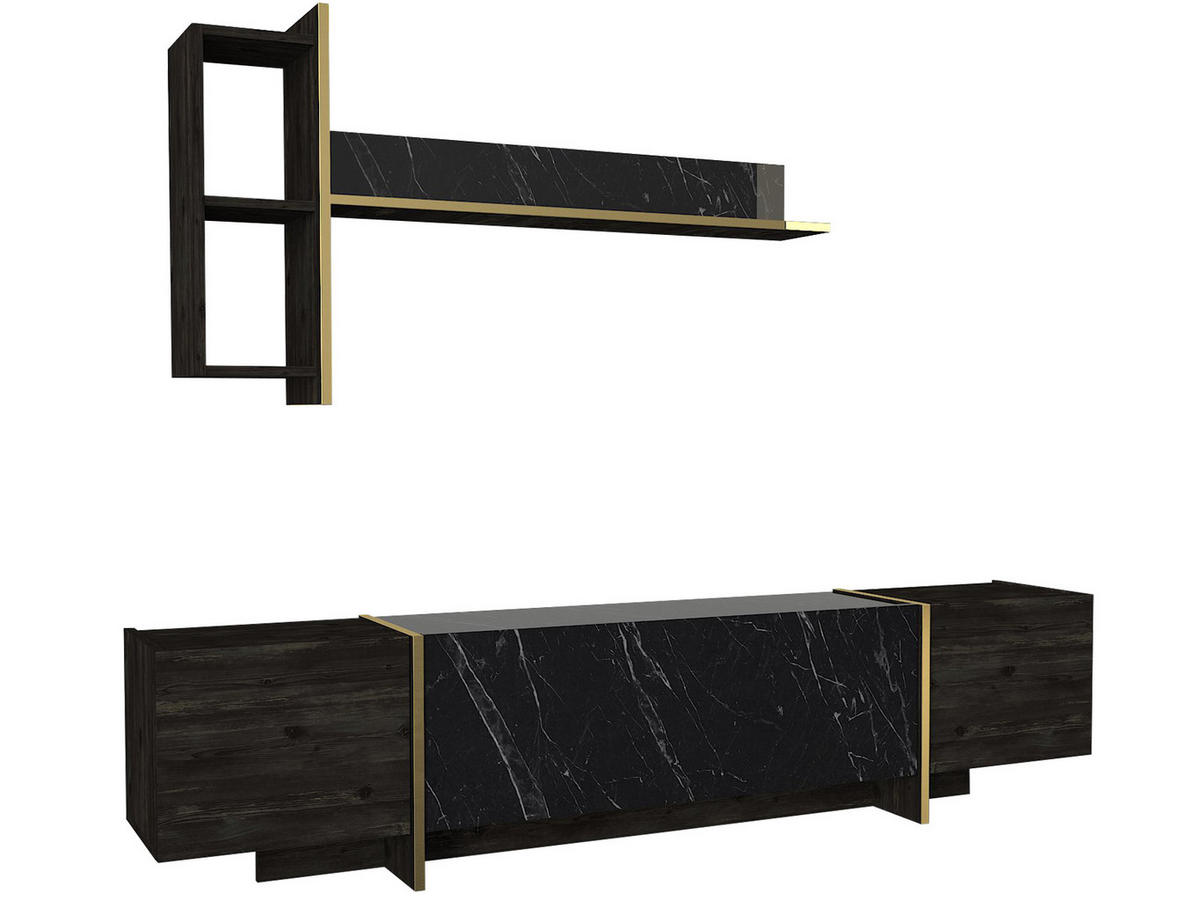 moebel17 WOHNWAND Veyron Rebab Braun Dunkelgrau ( Marmor Optik )