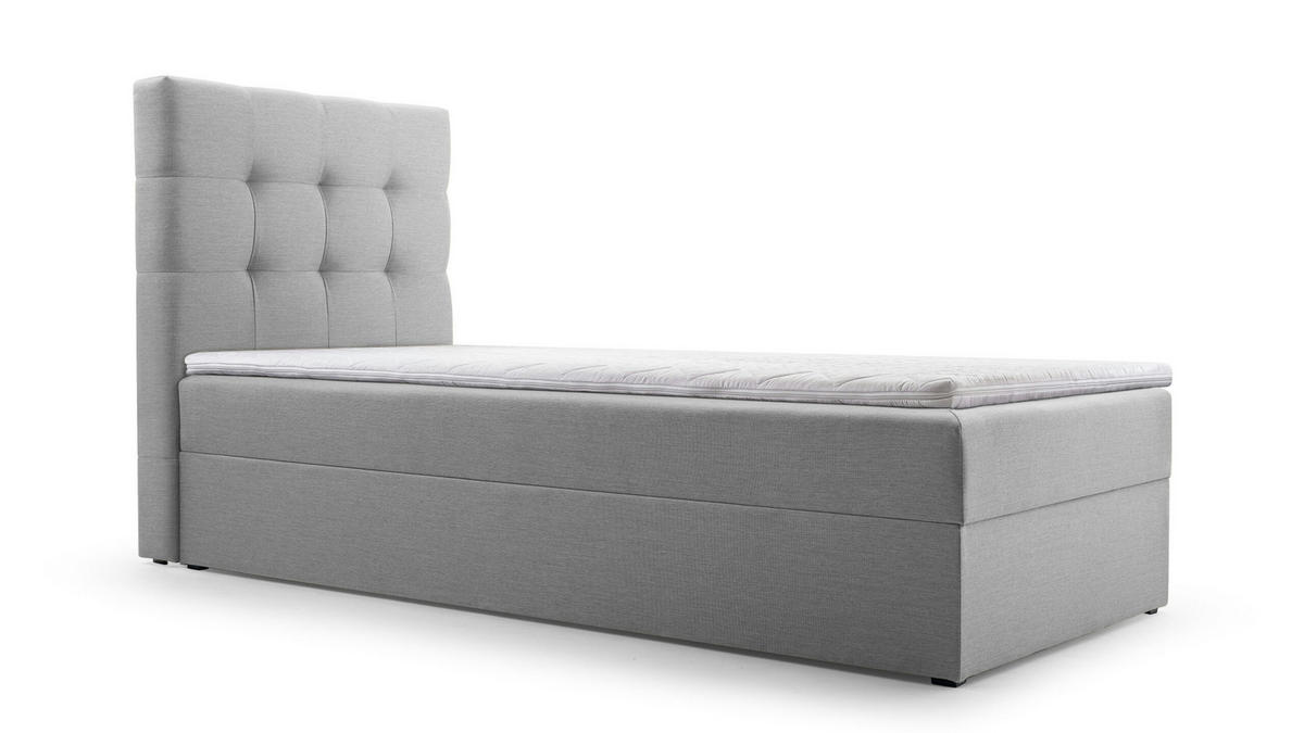 BETT - Boxspringbett 90x200 - 05 Hugo 91 - Hellgrau - Hellgrau, Holz (90/200cm) - Möblo