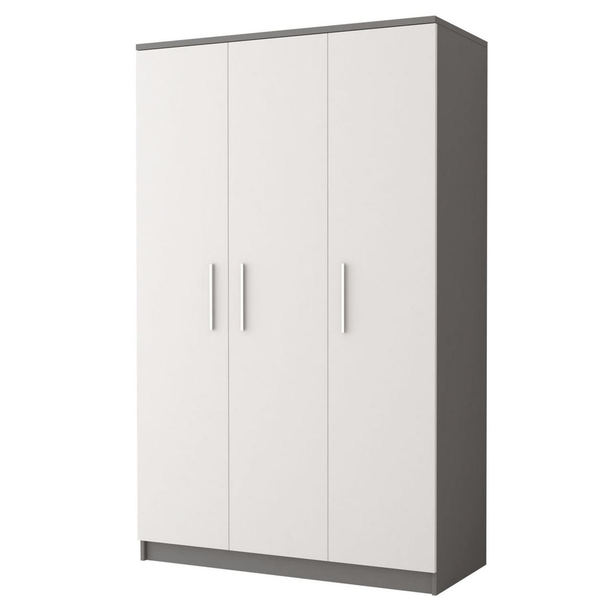 - Moderne Griffe: Die silbernen PVC-Griffe an den Türen verleihen dem Schrank einen eleganten und zeitgemäßen Look, der sich gut in verschiedene Einrichtungsstile einfügt.