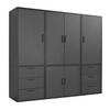 - Materialzusammensetzung: Korpus aus Spanplatte mit beständiger Kunstharzbeschichtung und Kunststoffgriffen in Frontfarbe.