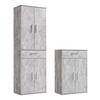 - Materialzusammensetzung: Korpus aus Spanplatte mit beständiger Kunstharzbeschichtung und push-to-open Öffnungsfunktion oder dezenten Kunststoffgriffen in silber-grau beim Schrank 'Der Lange'.