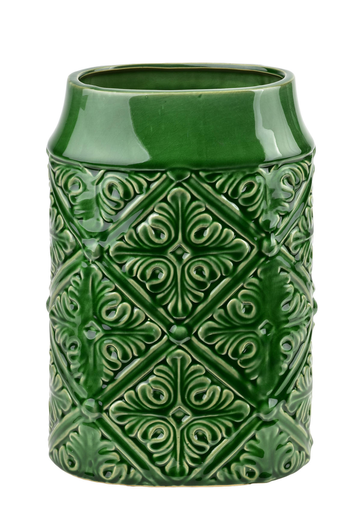 Die Keramikvase AMANDINE in kräftigem Grün (ca. 20 x 14 x 31 cm) ist ein stilvoller Blickfang für moderne und klassische Wohnräume. Die glänzende Oberfläche in Kombination mit dem dekorativen, dreidimensionalen Reliefmuster verleiht der Vase Tiefe und eine besonders elegante Wirkung – ideal, um Blumenarrangements wirkungsvoll in Szene zu setzen oder als eigenständiges Deko-Objekt zu wirken.
