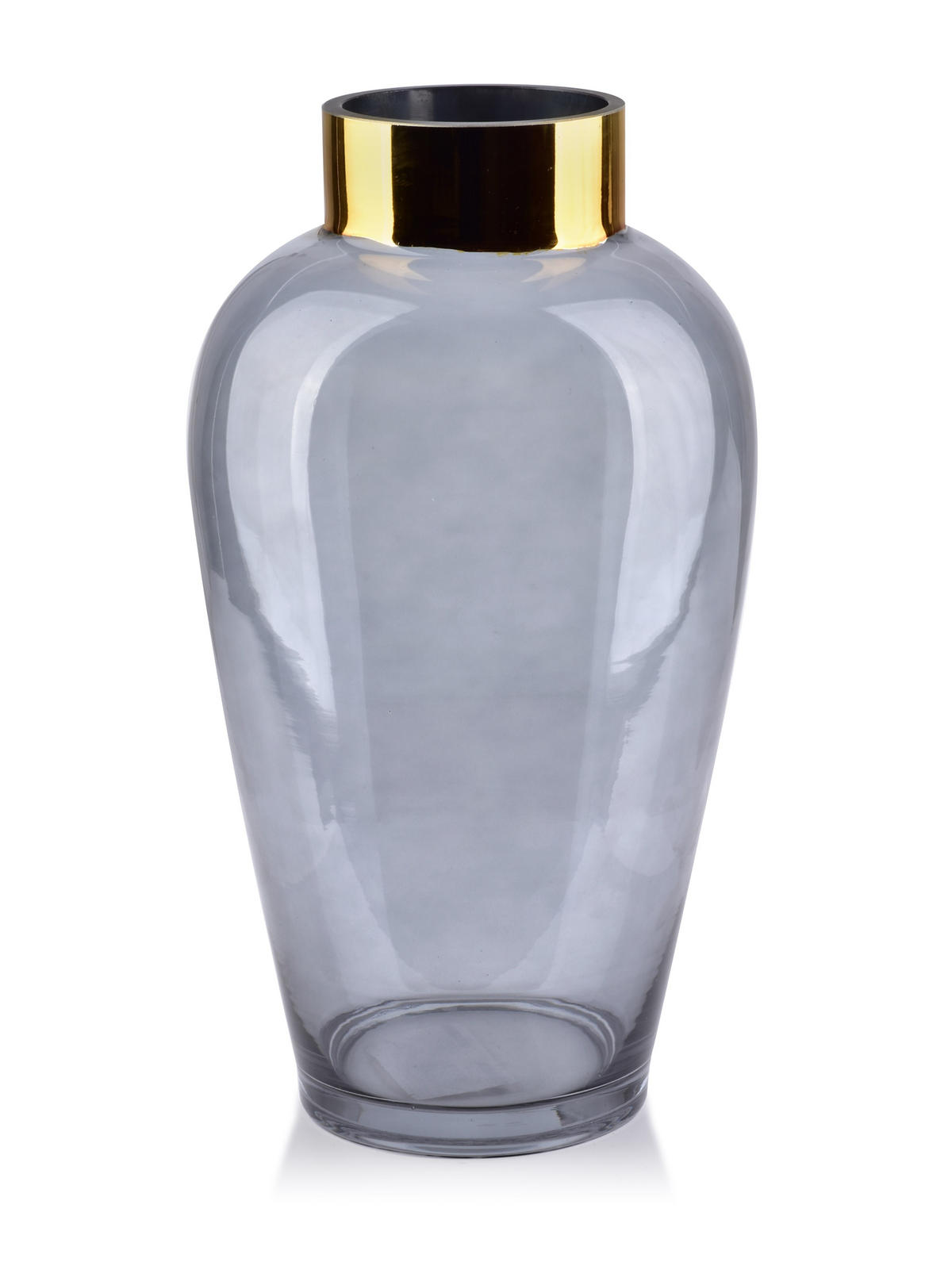 geräuchertes graues Glas mit goldenem Kattun am Boden der Vase. Schön und modern. Heutzutage ist eine Vase nicht