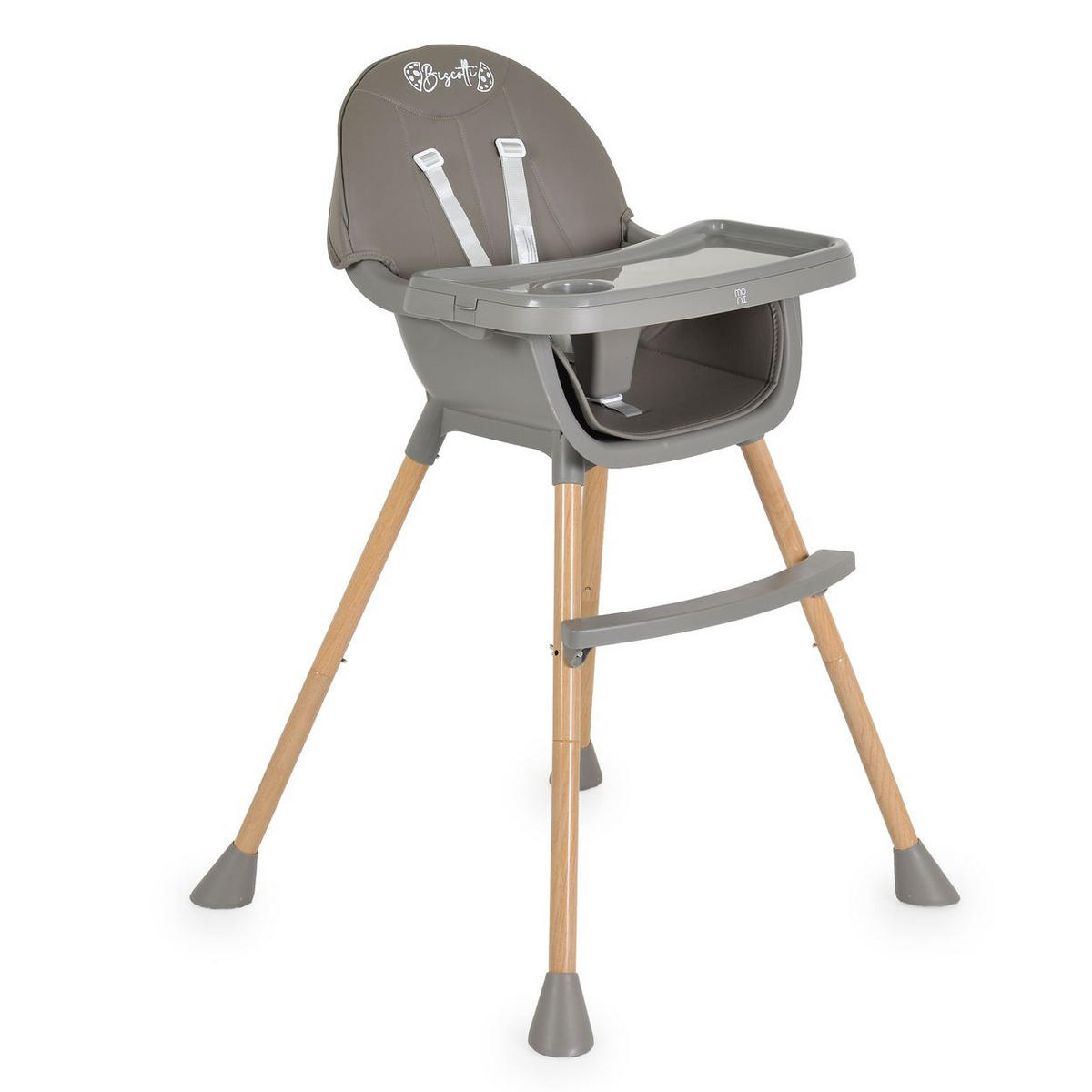 Moni HOCHSTUHL Biscotti 2 in 1 grau Kinderstuhl Anti-Rutsch-Füße Doppeltablett
