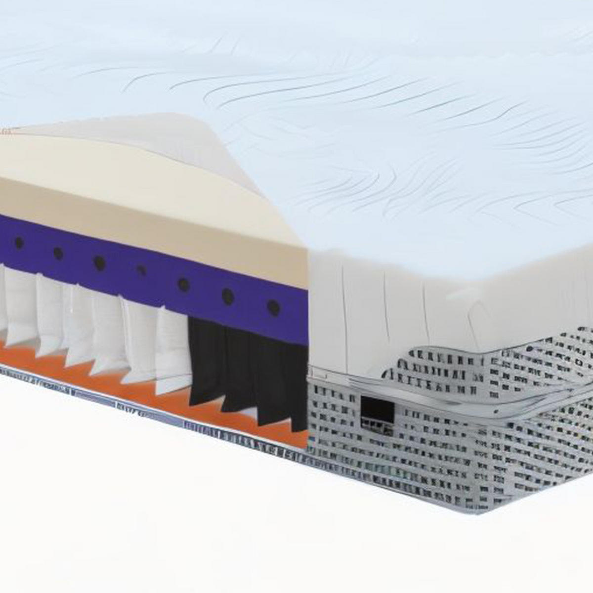 Durch seine offenzellige Struktur sorgt der Schaum für die richtige Luftzirkulation und schützt somit die Matratze vor Staub- und Milbenanfall. Pocket Spring Federn