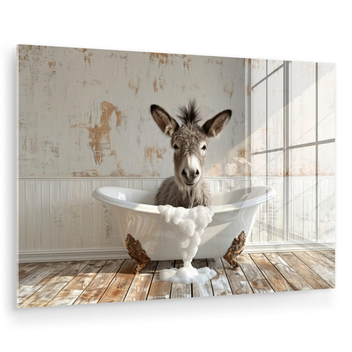 ACRYLGLASBILD Esel - Tiere - Badewanne - Schaumstoff Wanddeko 60x40 cm - Weiß, Glas (60/40cm) - MuchoWowMuchoWow