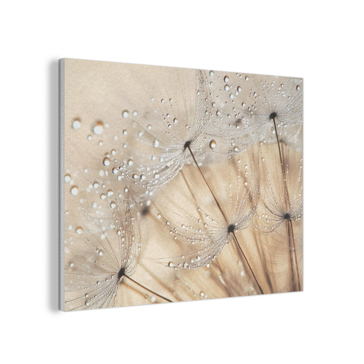 Ein abstraktes Bild von Löwenzahn mit Regentropfen.