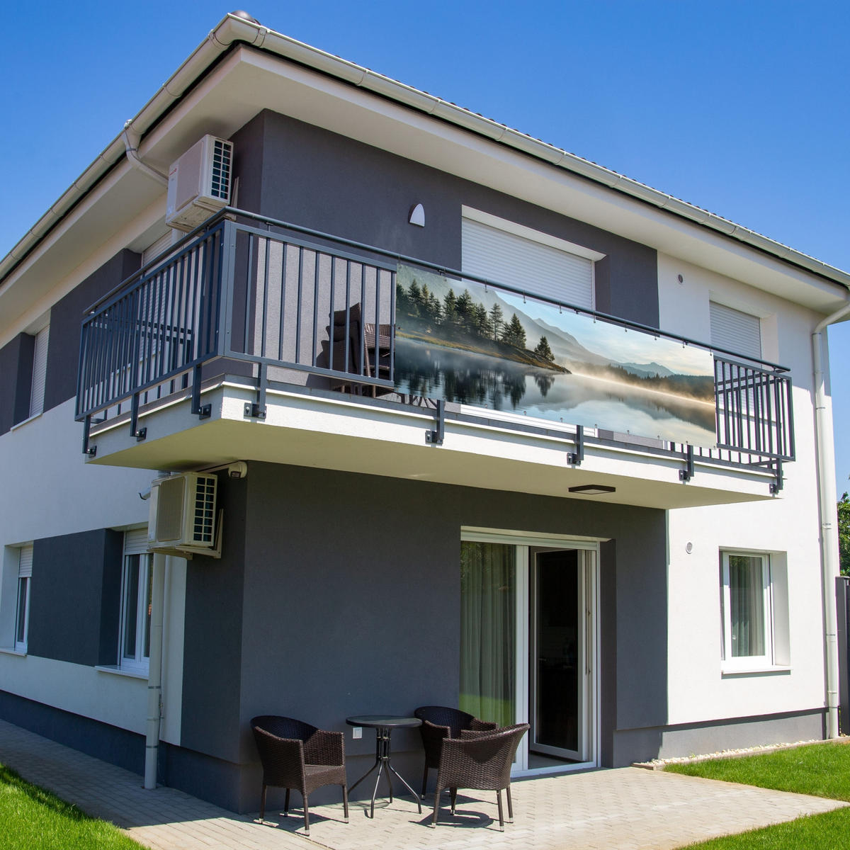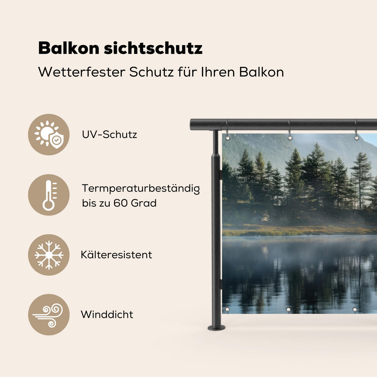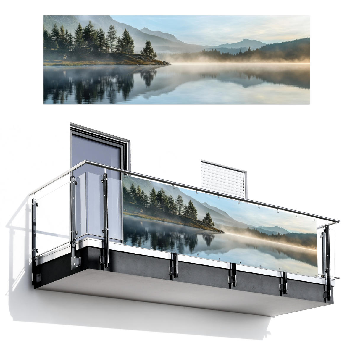 MuchoWow BALKON-SICHTSCHUTZ See - Nebel - Berge - Landschaft