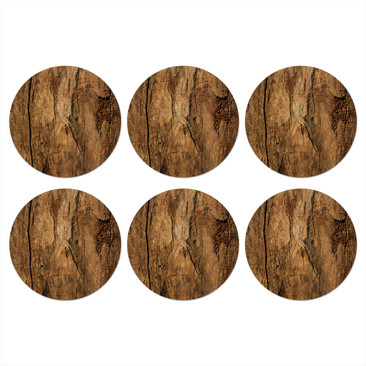MuchoWow GLASUNTERSETZER 6er-Set Rund Baumstamm - Holz - Textur 10x10 cm