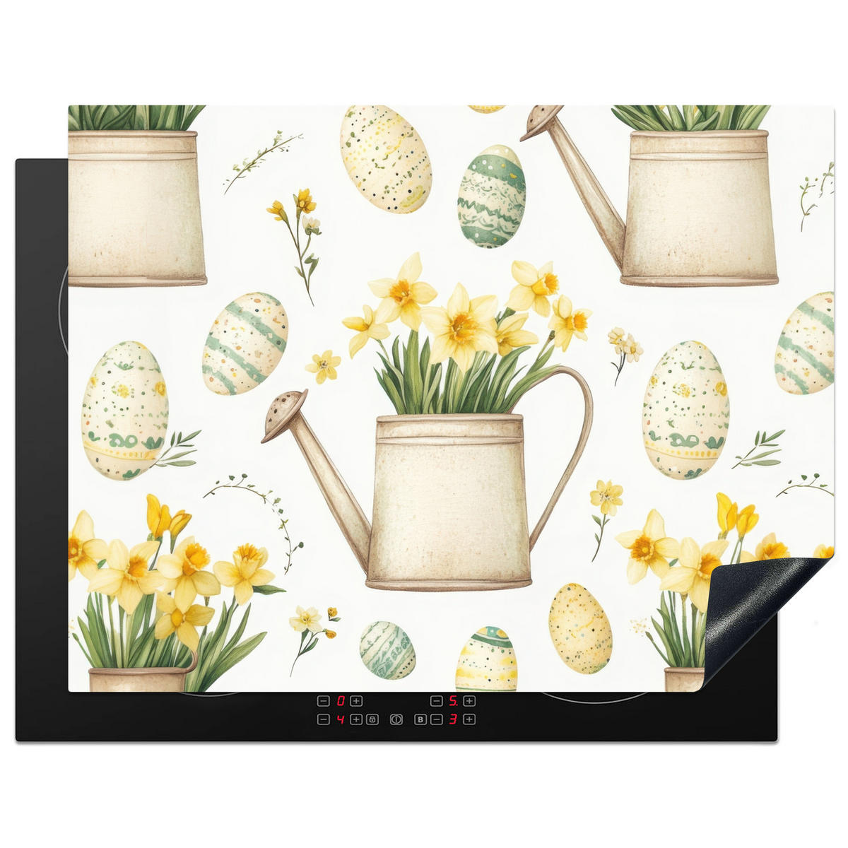 MuchoWow HERDABDECKPLATTE Gießkanne - Blumen - Eier Induktionsmatte 77x59 cm