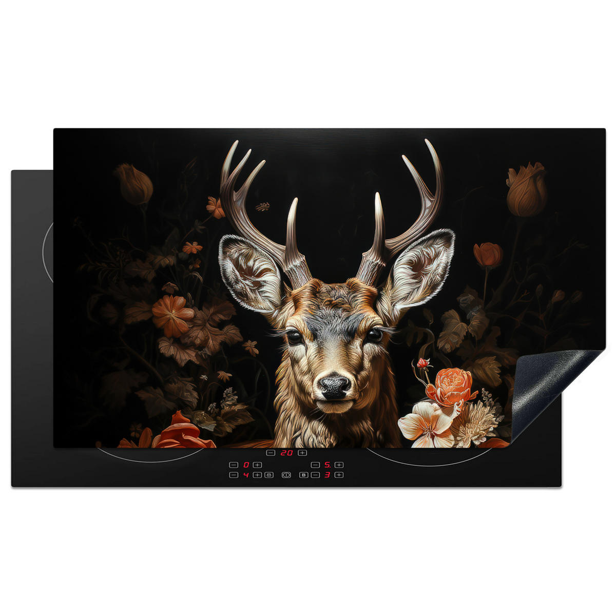 MuchoWow HERDABDECKPLATTE Hirsch - Tier - Blumen - Natur - Botanisch Induktionsschutz 91.2x52 cm