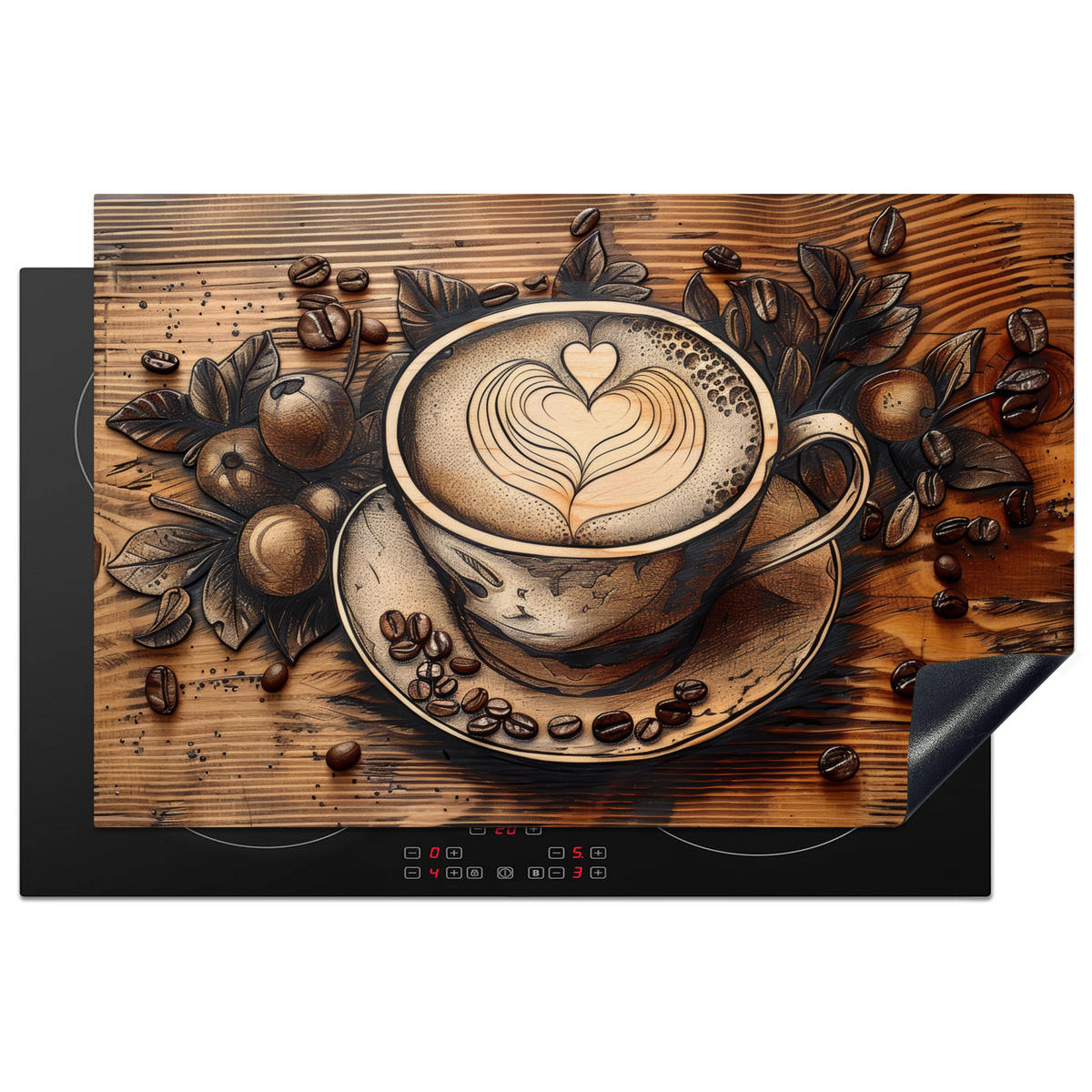 MuchoWow HERDABDECKPLATTE Kaffee - Vintage - Braun - Tasse - Holz Abdeckung Ceranfeld 81.2x52 cm