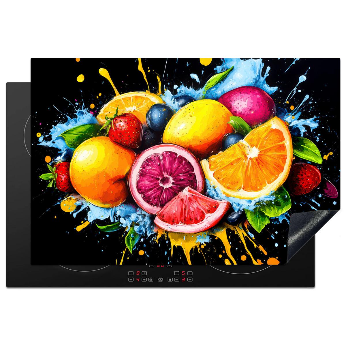 MuchoWow HERDABDECKPLATTE Obst - Graffiti - Bunt - Orange - Erdbeere - Abstrakt Ceranfeldabdeckung 76x51.5 cm