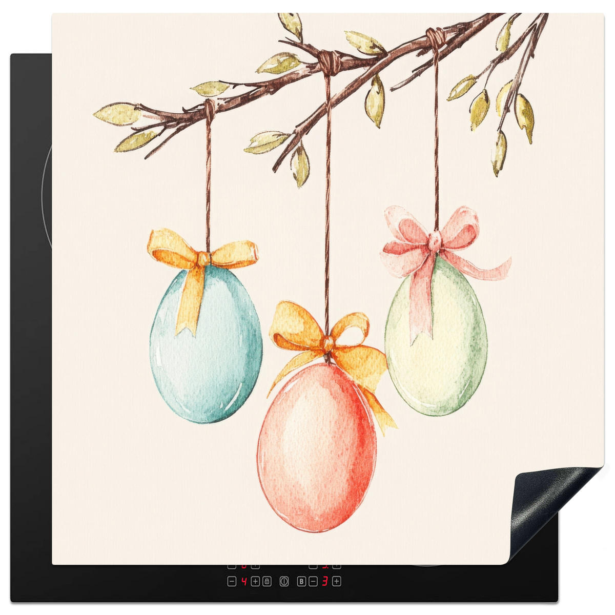 HERDABDECKPLATTE Osterkuchen - Schleife - Eier Induktionsmatte 78x78 cm - Creme, Kunststoff (78/78/0.2cm) - MuchoWow