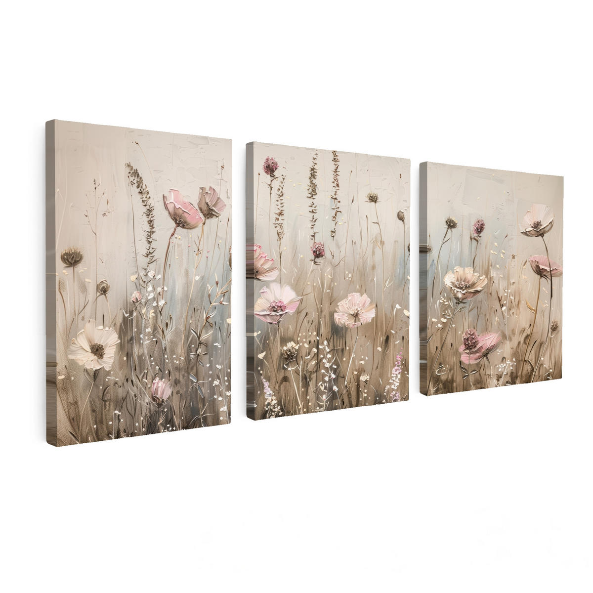 Rosa Blumen auf beigem Hintergrund.