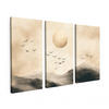 MuchoWow LEINWANDBILD 3er Set Landschaft - Japandi - Beige - Vögel 120x80 cm