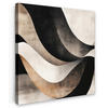 Schwarze, weiße und braune Streifen fließen in weichen Wellen ineinander. Die Textur hat einen leicht verwitterten Look, der an einen Vintage-Look erinnert. Die Schichtung und Schattierung erzeugen eine subtile Illusion von Tiefe und Bewegung.