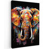 Ein Elefant in verschiedenen Graffitifarben auf schwarzem Hintergrund.