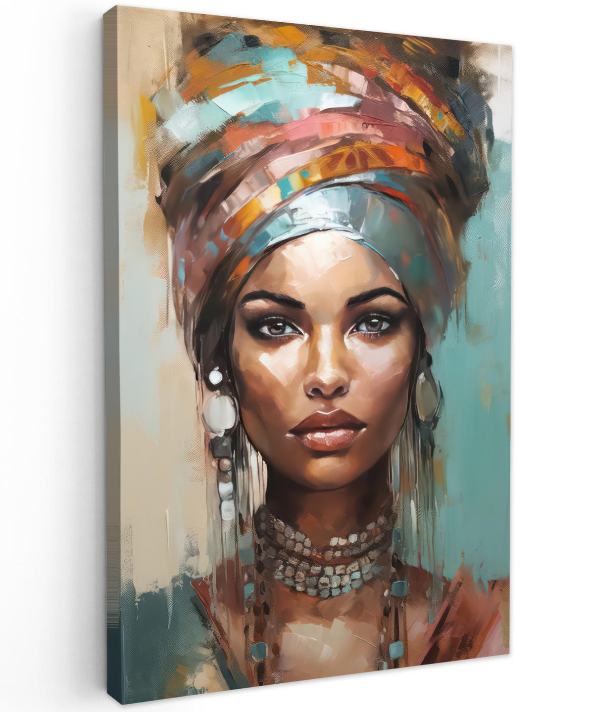 Druck einer gemalten Frau, die verschiedenen Schmuck trägt.