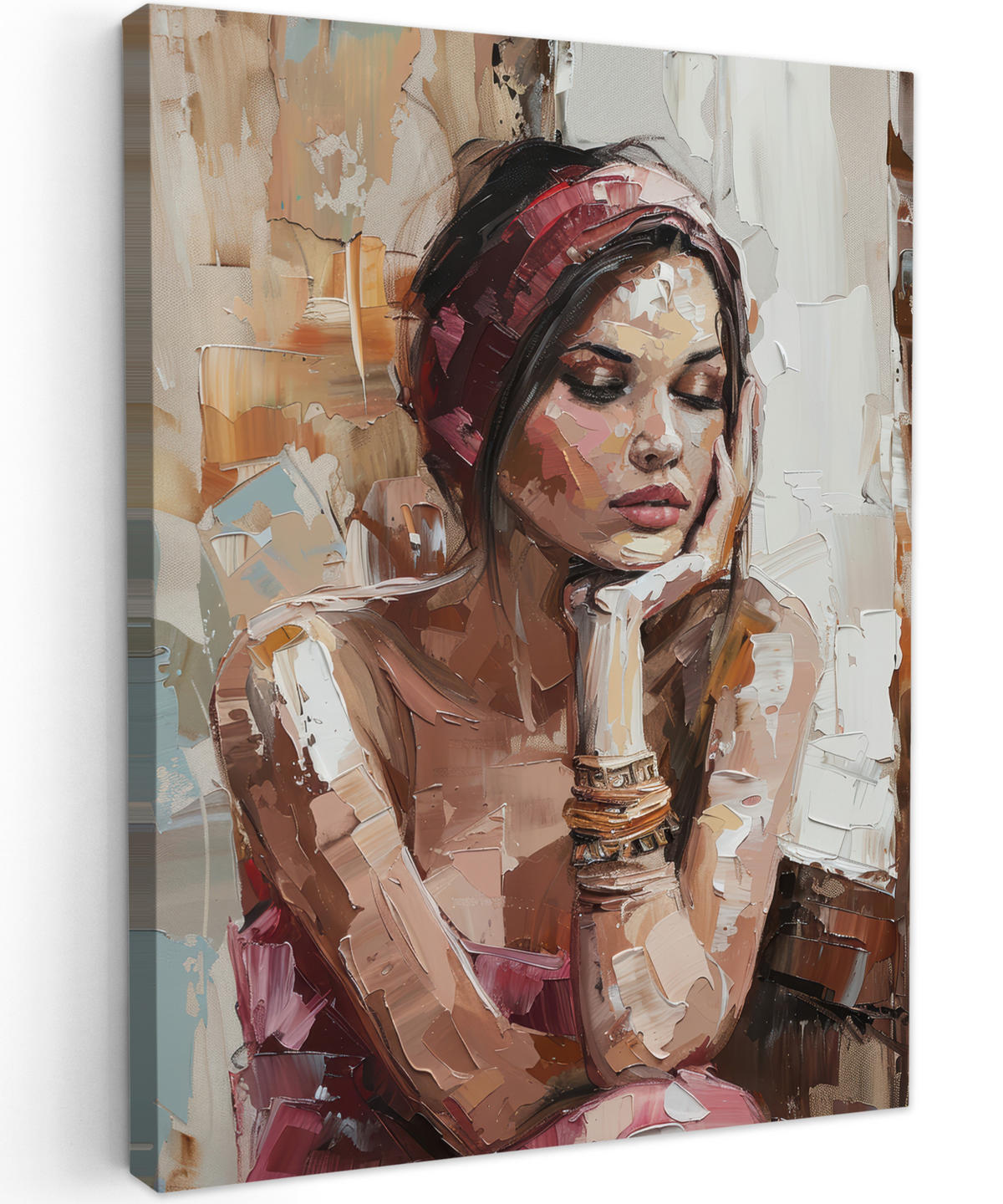 LEINWANDBILD Frau - Lackierung - Porträt - Modern Wandbild Wohnzimmer 60x80 cm - Altrosa, Textil (60/80cm) - MuchoWowMuchoWow