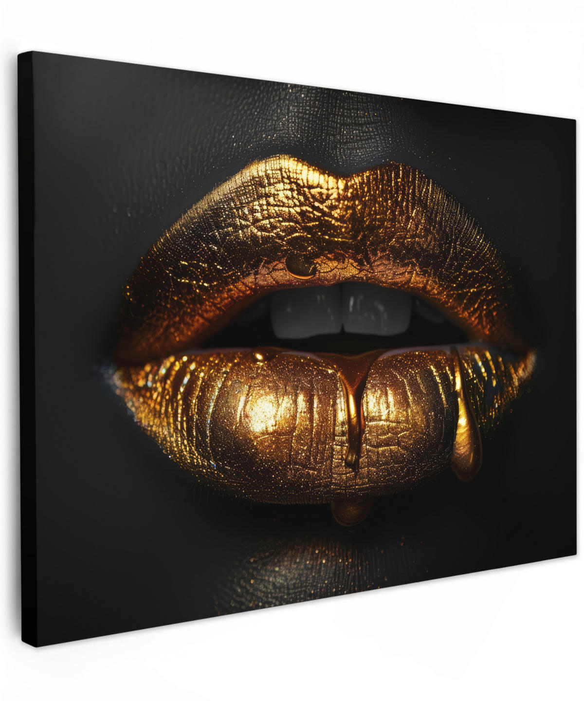 MuchoWow LEINWANDBILD Frau - Porträt - Lippen - Gold - Schwarz Wandbilder 80x60 cm