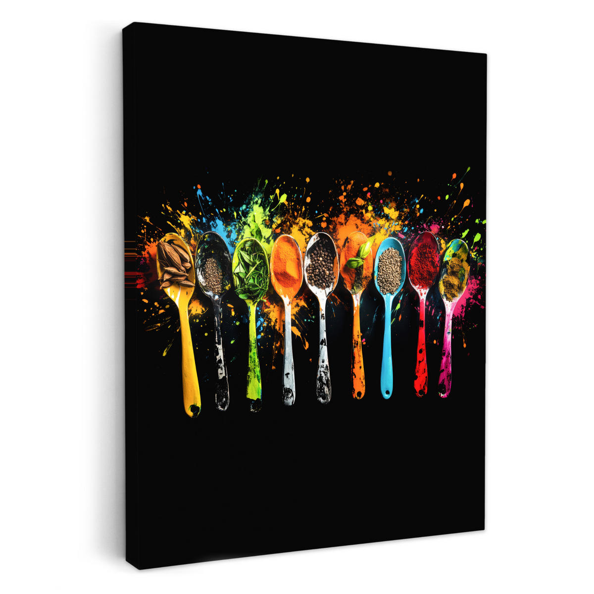 Löffel mit Gewürzen in einem modernen, farbenfrohen Graffiti-Stil mit Farbe.