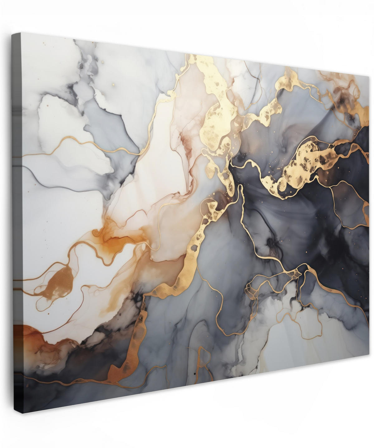 MuchoWow LEINWANDBILD Marmor - Schwarz - Gold - Weiß Wandbild 40x30 cm