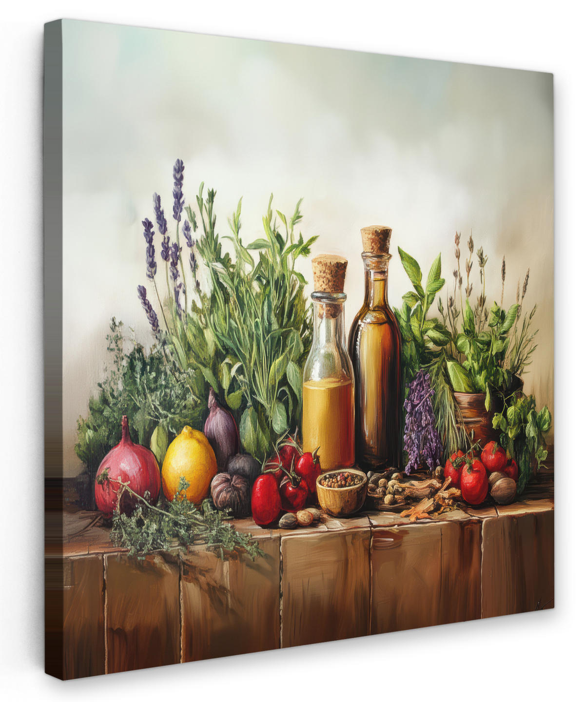 MuchoWow LEINWANDBILD Stilleben - Kräuter - Gewürze - Früchte - Farbenfroh Wandbild Wohnzimmer 50x50 cm