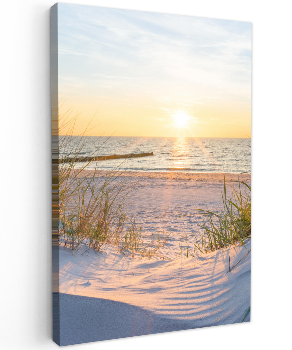 MuchoWow LEINWANDBILD Strand - Sonne - Düne - Gras - Sand - Horizont Deko Groß 90x140 cm