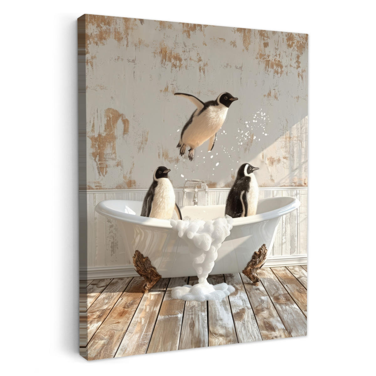 MuchoWow LEINWANDBILD Vintage - Pinguin - Badewanne - Schaumstoff Wandbild Wohnzimmer 60x80 cm