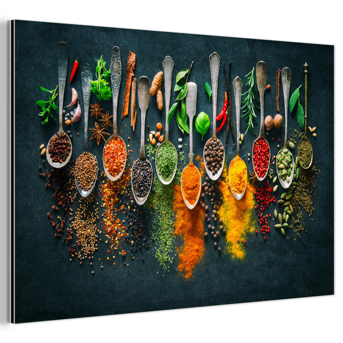 MuchoWow METALLBILD Kräuter - Gewürze - Löffel Deko Groß 120x80 cm