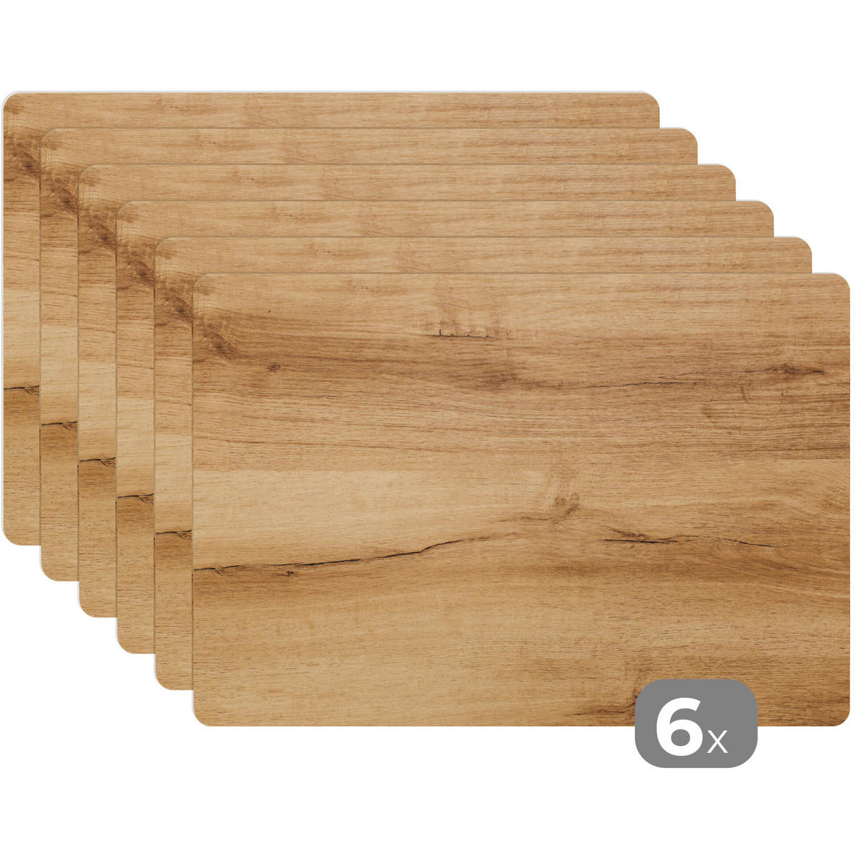 PLATZSETS 6er-Set Holzoptik - Braun - Holz Tischuntersetzer 45x30 cm - Eichefarben, Kunststoff (0.3/45/30cm) - MuchoWowMuchoWow