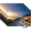 MuchoWow PLATZSETS 6er-Set Strand - Sonne - Düne - Gras - Sand - Horizont Abwaschbar 45x30 cm