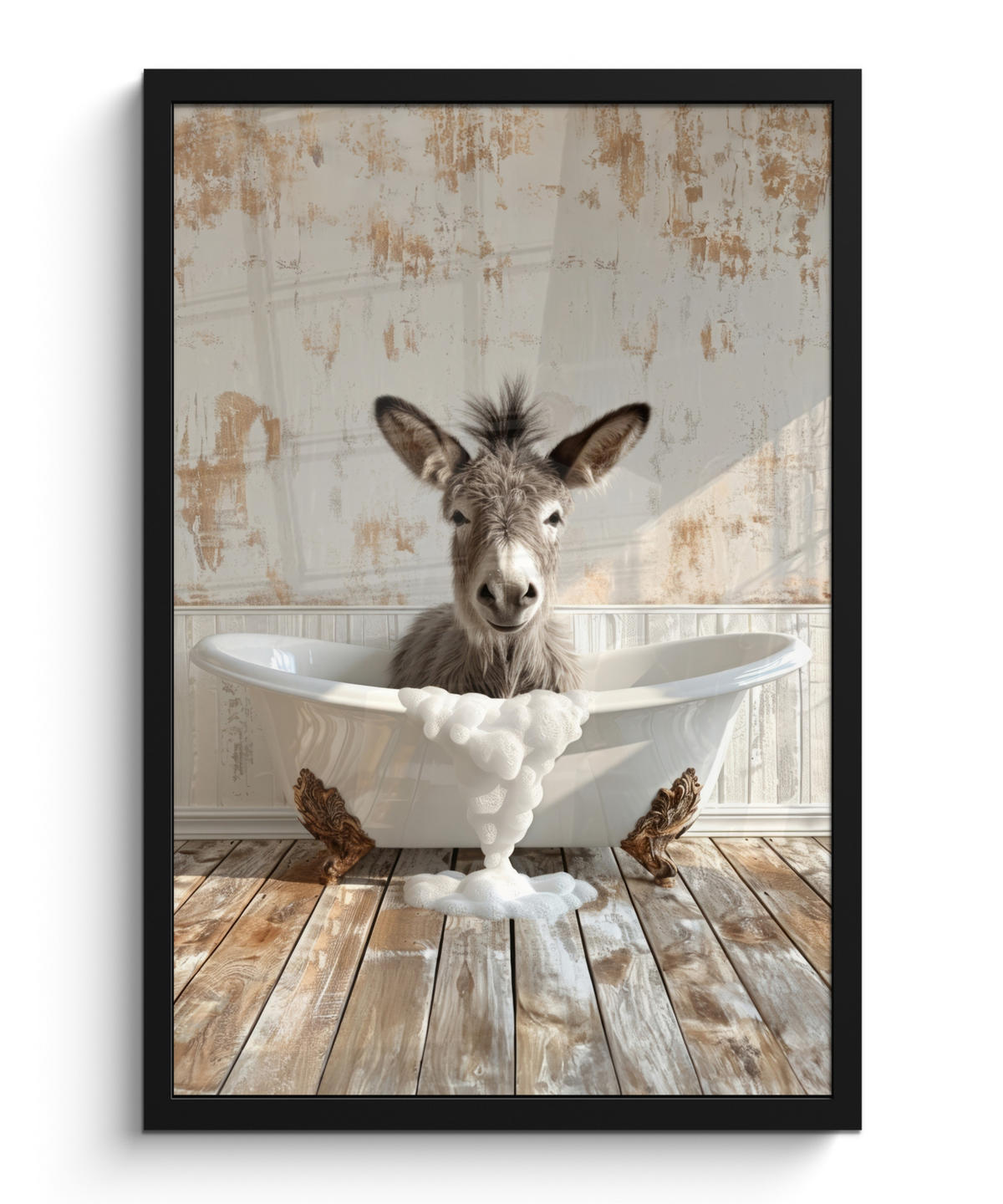 MuchoWow POSTER MIT RAHMENGERAHMTES BILD Esel - Tiere - Badewanne - Schaumstoff Bilder mit Rahmen 40x60 cm