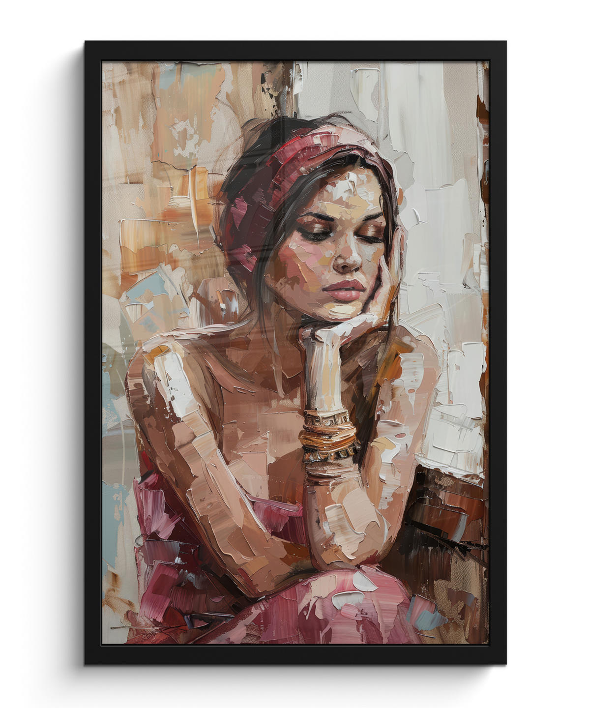 POSTER MIT RAHMENGERAHMTES BILD Frau - Lackierung - Porträt - Modern Bilder mit Rahmen 40x60 cm - Altrosa, Papier (40/60cm) - MuchoWowMuchoWow