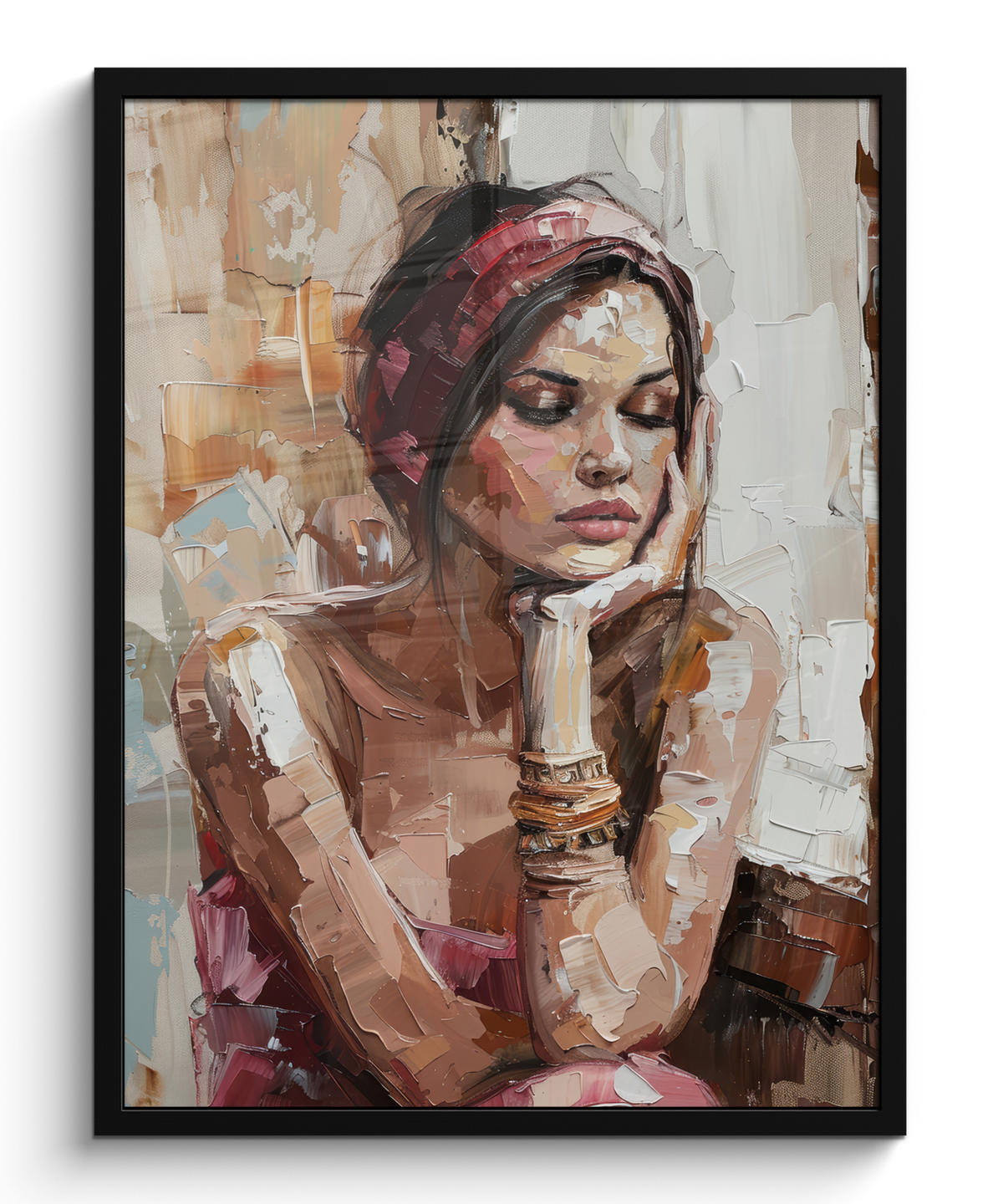 POSTER MIT RAHMENGERAHMTES BILD Frau - Lackierung - Porträt - Modern Posterleiste 60x80 cm - Altrosa, Papier (60/80cm) - MuchoWowMuchoWow