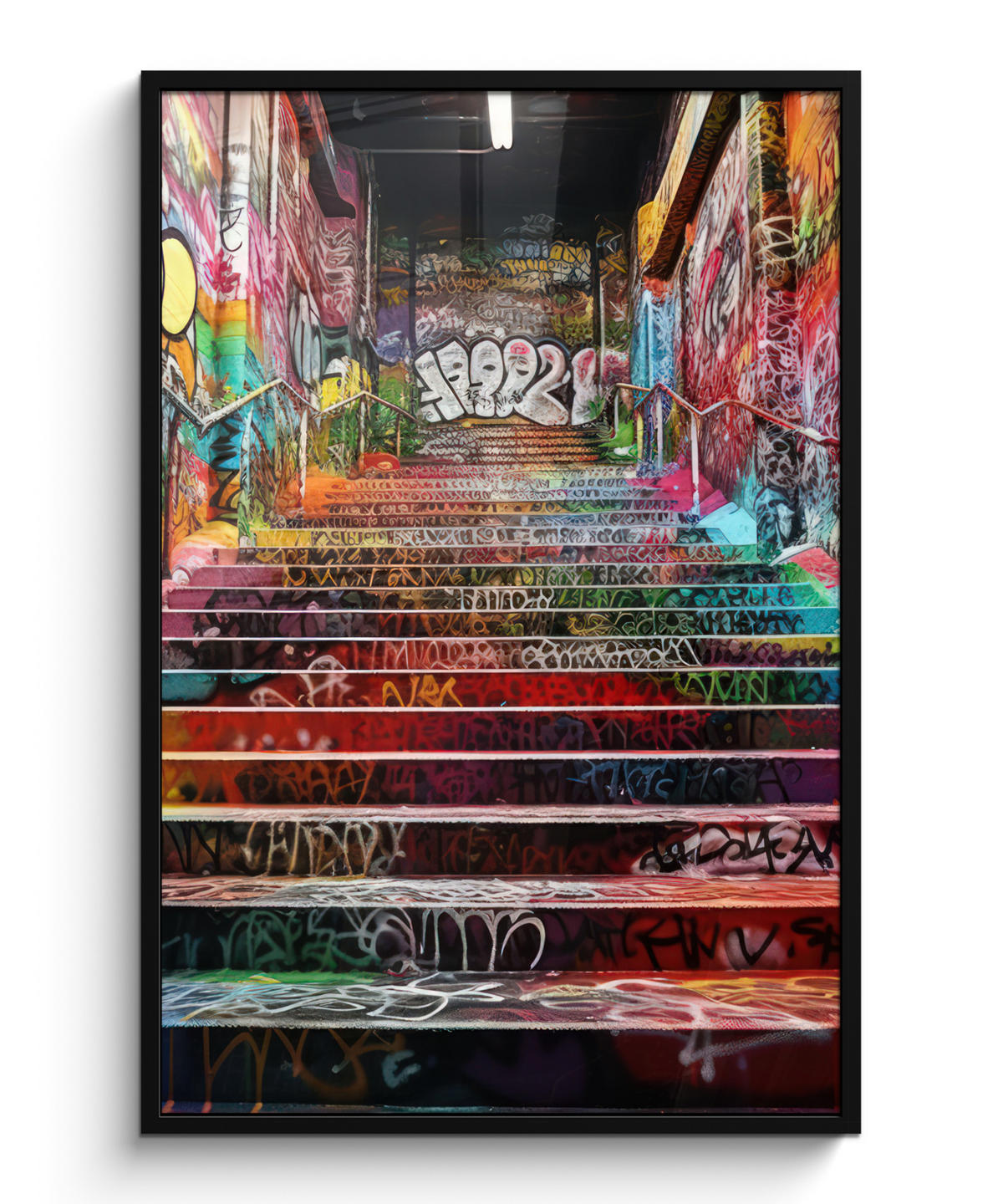 POSTER MIT RAHMENGERAHMTES BILD Treppe - Graffiti - Farben - Kunst Bilderleiste 80x120 cm - Multicolor, Papier (80/120cm) - MuchoWowMuchoWow