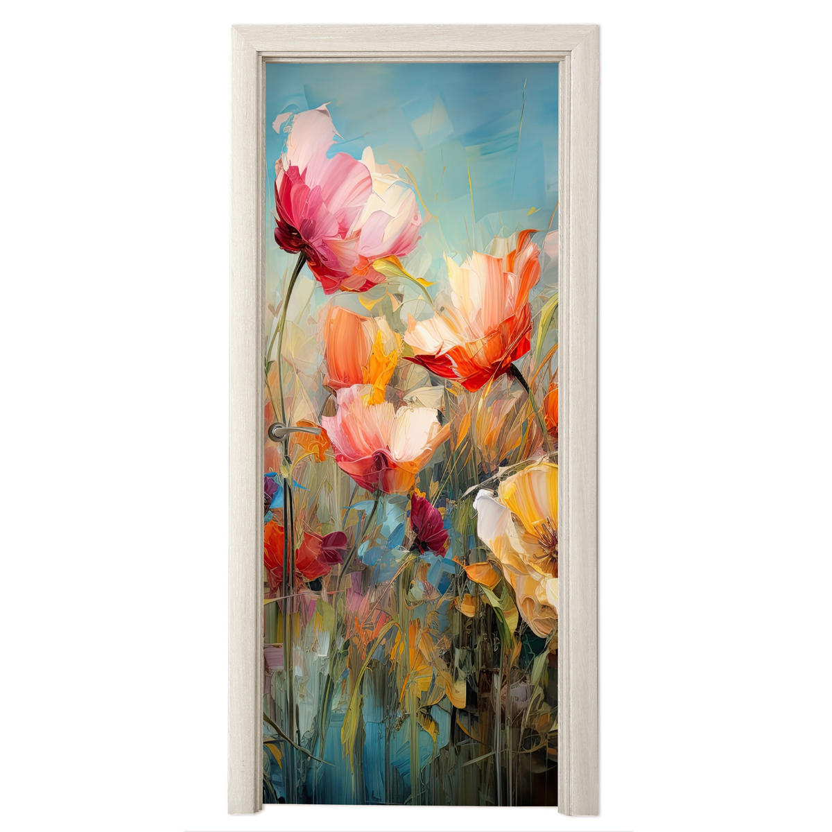 MuchoWow TÜRAUFKLEBER Selbstklebend - Blumen - Aquarell - Kunst - Botanisch - Natur 95x235 cm - Türtapete