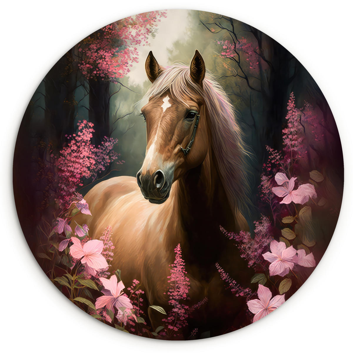 MuchoWow WANDBILD Pferd - Blumen - Rosa - Natur - Wald 30x30 cm