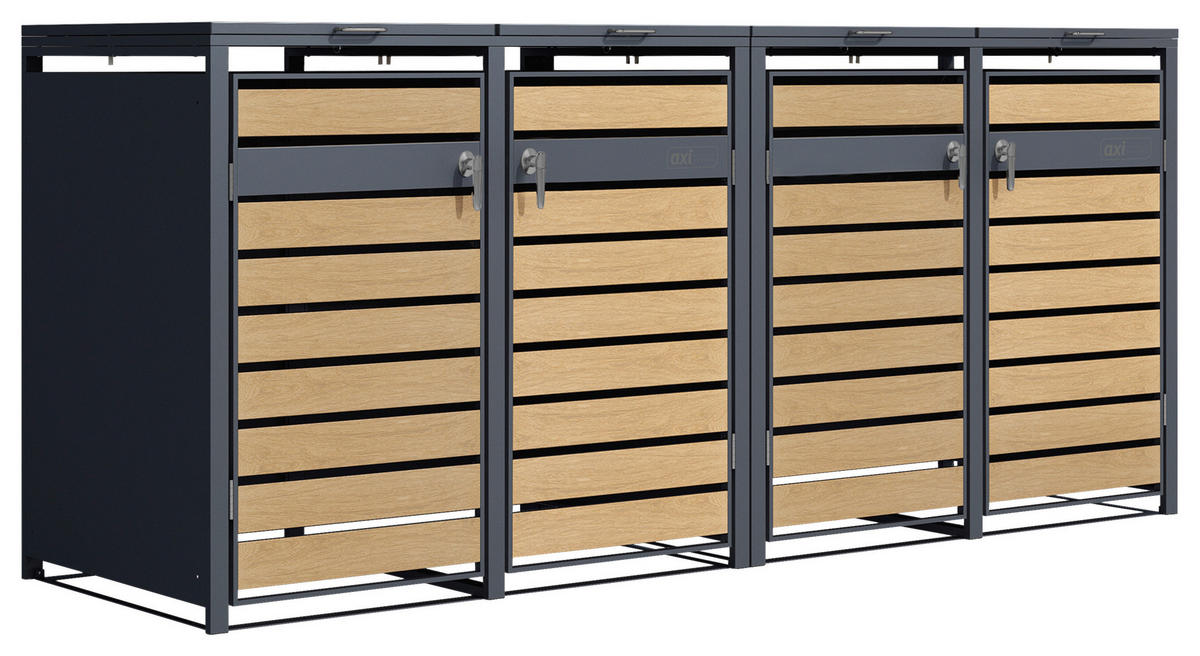 Abschließbare Mülltonnenbox (4er-Element) aus Metall in Anthrazit & Braun