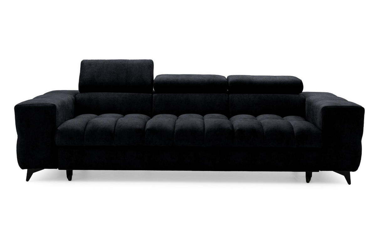 Muffo 3-SITZER Sofa PUDDING mit Schlaffunktion 127x190 Velours Schwarz