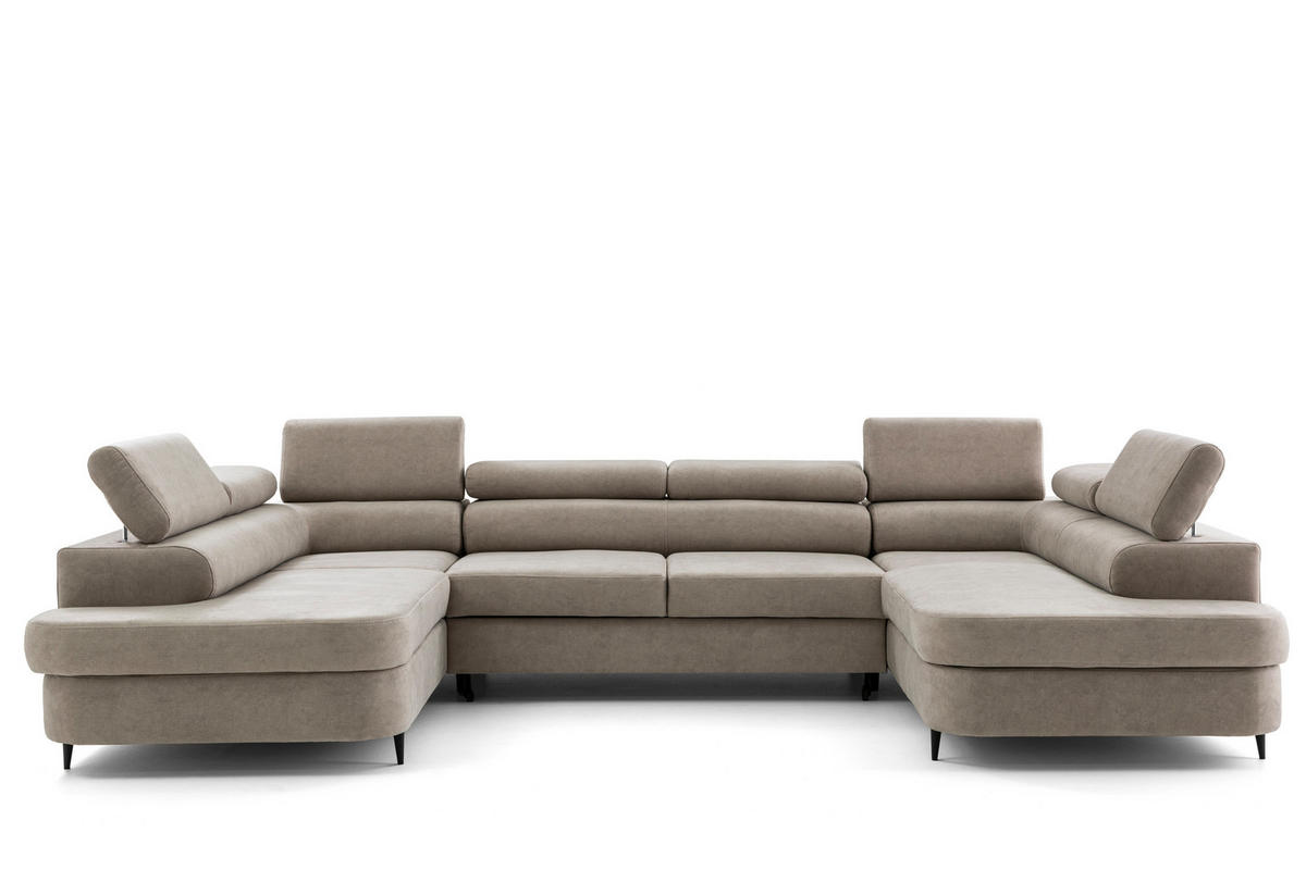 U-Form-Ecksofa Priam U2 ist ein beeindruckendes Wohnzimmermöbel mit rund 350 cm Breite, das mit seiner klaren, minimalistischen Linie und den schlanken Metallbeinen sofort zum Blickfang im Raum wird. Die hochwertige Polsterung in