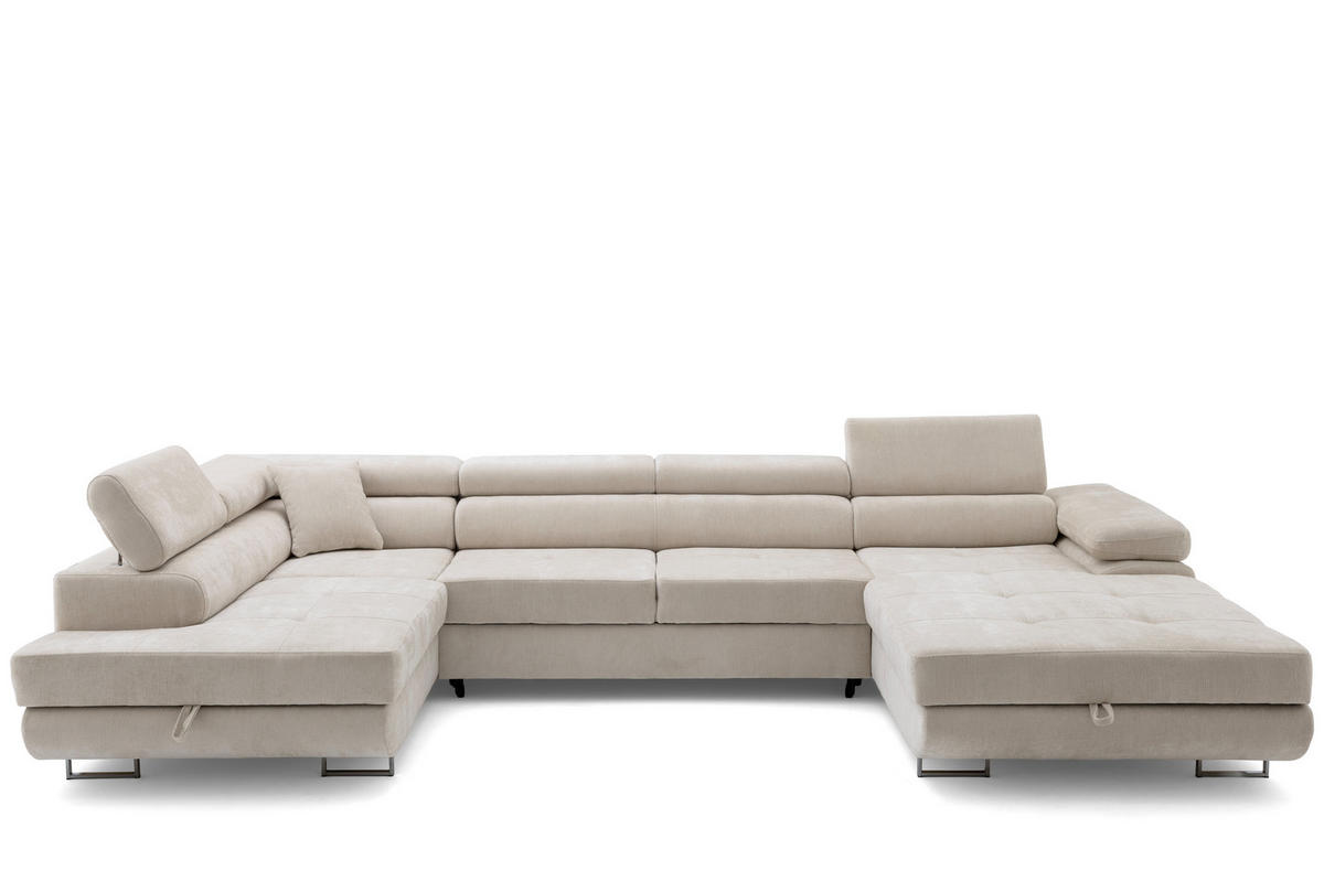Lumo 55 (Beige) Chenille-Bezug sorgt für eine edle, zeitlose Optik und liegt angenehm weich in der Hand. Schlaffunktion, integrierte Bettkasten und stufenweise verstellbare Kopfstützen machen das
